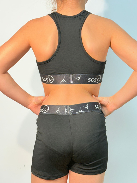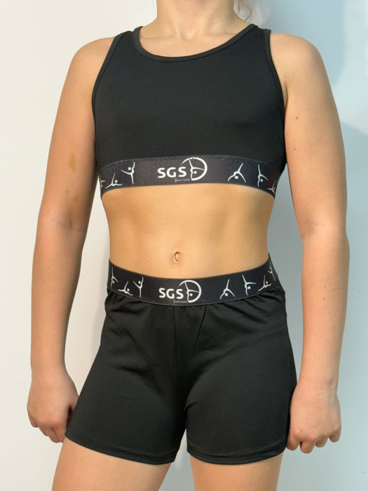 Wygodny, elastyczny i szybkoschnący 2 częściowy komplet na ramiączkach z szeroką gumą do trenowania sportów gimnastycznych i gimnastycznopodobnych.  Top oraz leginsy z szeroką gumą.