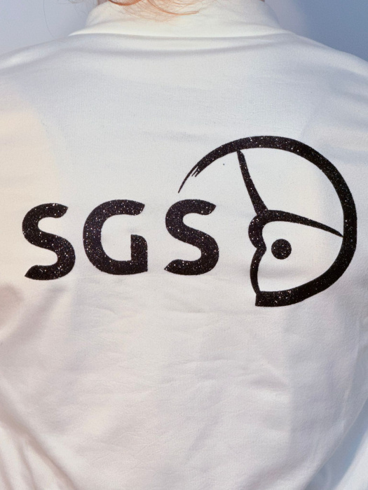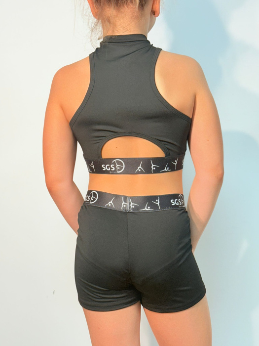 Wygodny, elastyczny i szybkoschnący 2 częściowy komplet do trenowania sportów gimnastycznych i gimnastycznopodobnych. Top z szeroką gumą oraz logiem na piersi oraz bluza ze stójką i zamkiem błyskawicznym z brokatowym logo na plecach, napisem "your move" na rękawach oraz logo na piersi.